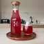 De glazen karaf bestaat uit gerecycleerd glas en een kurken deksel.